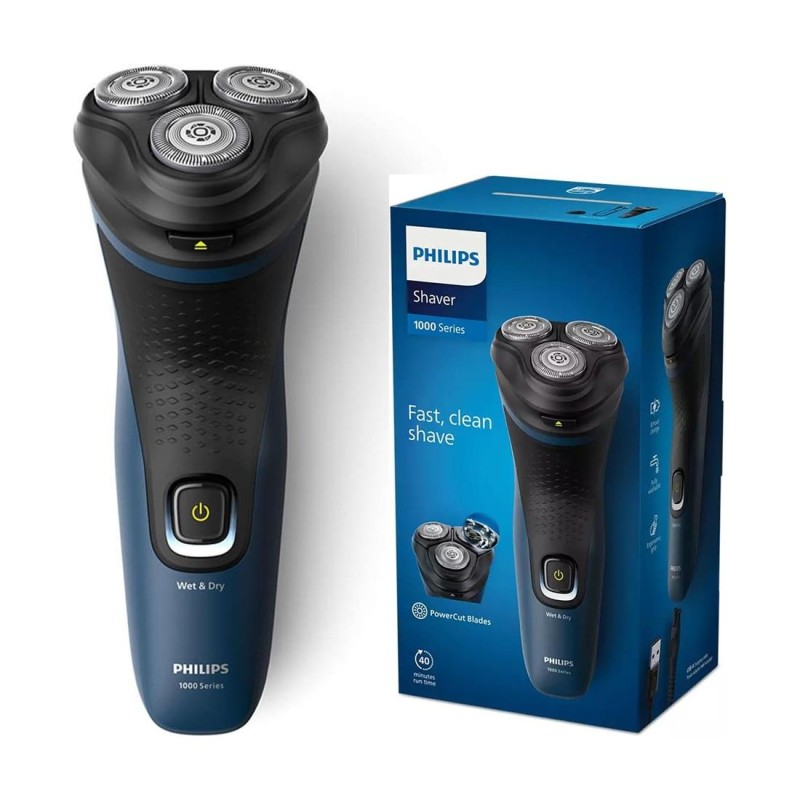 Philips S1151/00 afeitadora Máquina de afeitar de rotación Negro, AzulPhilips S1151/00. Sistema de afeitado: Máquina de afeitar de rotación, Color del producto: Negro, Azul. Fuente de energía: Batería, Tecnología de batería: Níquel-metal hidruro (NiMH), Tiempo de funcionamiento: 40 minCaracterísticas:Características:Sistema de afeitado: Máquina de afeitar de rotaciónRecortadora: NoColor del producto: Negro, AzulMangos de goma: SiLavable: SiMojado y seco: SiNúmero de máquina de afeitar cabezas / cuchillas: 3Indicación:Indicador de carga: SiControl de energía:Fuente de energía: BateríaRecargable: SiTecnología de batería: Níquel-metal hidruro (NiMH)Tiempo de funcionamiento: 40 minTiempo de carga: 8 h