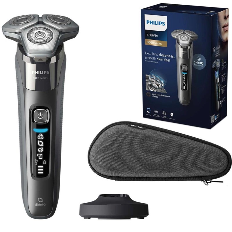 Philips SHAVER Series 8000 Afeitadora Series 8000 S8697/35 Afeitadora eléctrica Seco y MojadoPhilips SHAVER Series 8000 Afeitadora Series 8000 S8697/35 Afeitadora eléctrica Seco y Mojado. Sistema de afeitado: Máquina de afeitar de rotación, Color del producto: Cromo, Tecnologías de sistema de afeitado: SteelPrecision blades. Fuente de energía: Batería, Tecnología de batería: Ión de litio, Tipo de batería: Batería integrada. Funciones de la base de la máquina de afeitar: CargaCaracterísticas:Características:Sistema de afeitado: Máquina de afeitar de rotaciónTecnologías de sistema de afeitado: SteelPrecision bladesRecortadora: SiColor del producto: CromoCortador de relieves: SiRecortador de precisión: SiMangos de goma: SiBloqueo de viajes: SiLavable: SiMojado y seco: SiNúmero de máquina de afeitar cabezas / cuchillas: 3Bluetooth: SiServicio de asistencia mediante aplicación móvil: SiAplicaciones soportadas: Daily CareSistemas operativos móviles soportados: Android, iOSIndicación:Indicador de nivel de batería: SiIndicador de bloqueo para viajes: SiControl de energía:Fuente de energía: BateríaRecargable: SiTecnología de batería: Ión de litioTipo de batería: Batería integradaTiempo de funcionamiento: 50 minTiempo de carga: 1 hCarga rápida: SiTiempo de carga rápida: 5 minConsumo de energía (inactivo): 0,04 WTiempo de afeitado: 50 minConsumo de energía (max): 9 WVoltaje de la pila: 5 VContenido del embalaje:Estación base: SiFunciones de la base de la máquina de afeitar: CargaCepillo de limpieza: SiFunda: SiEstuche de viaje: Si