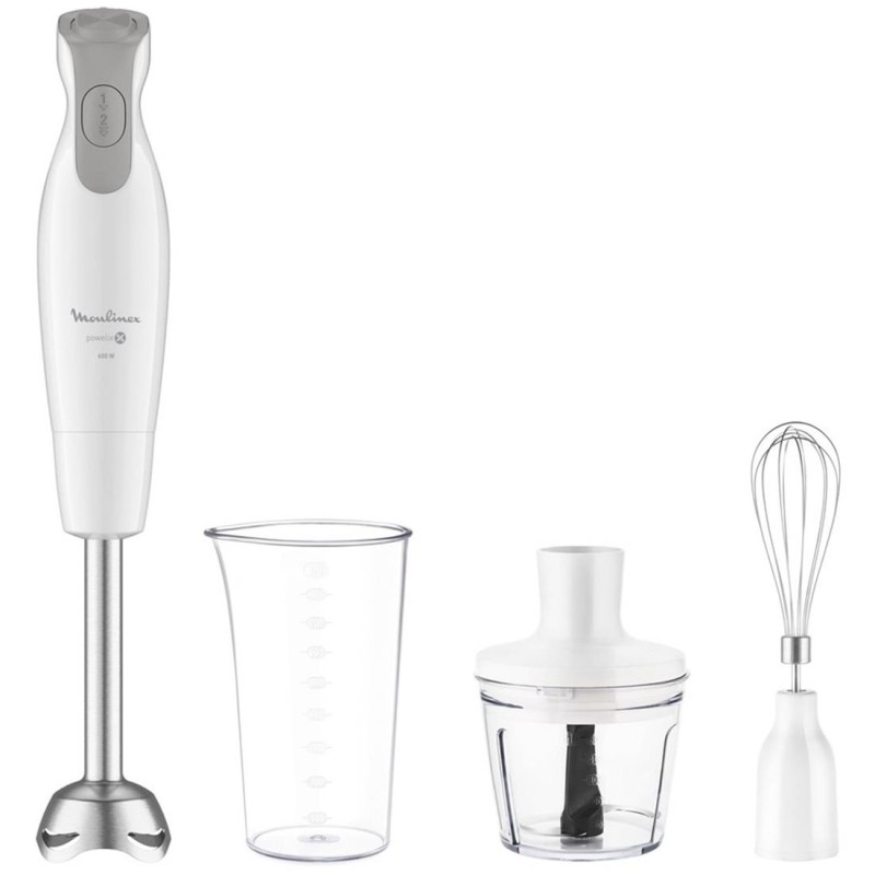 Moulinex DD553110 Batidora DailyChefLa batidora Moulinex DD553110 DailyChef es el accesorio de cocina perfecto para preparar una amplia variedad de recetas. Con su potente motor de 600 W y dos velocidades, podrás mezclar y triturar tus ingredientes de manera rápida y eficiente.CaracterísticasVelocidad: 2 velocidadesPotencia: 600 WMango ergonómico: Diseñado para mayor comodidad y control durante su uso.Pie antisalpicaduras: Evita salpicaduras y facilita la limpieza después de su uso.Cuchillas Powelix: Estas cuchillas de alta calidad aseguran una durabilidad excepcional y resultados un 30% más eficientes.Depósito: Incluye un vaso medidor de 800 ml y una picadora de 500 ml.Peso: 1,3 KgDimensiones: 420 x 70 x 94 mmFunciones: Ideal para preparar sopas caseras, purés, salsas, pesto, y mucho más.Categoría de color: BlancoSKU: MOU*DD5531EAN: 3016661157806Con la batidora Moulinex DD553110 DailyChef, podrás crear deliciosos platos caseros de manera fácil y rápida. ¡Aprovecha su potencia y versatilidad en la cocina!¡Prepara platos deliciosos con facilidad y rapidez! La batidora Moulinex DD553110 DailyChef es tu aliada en la cocina.