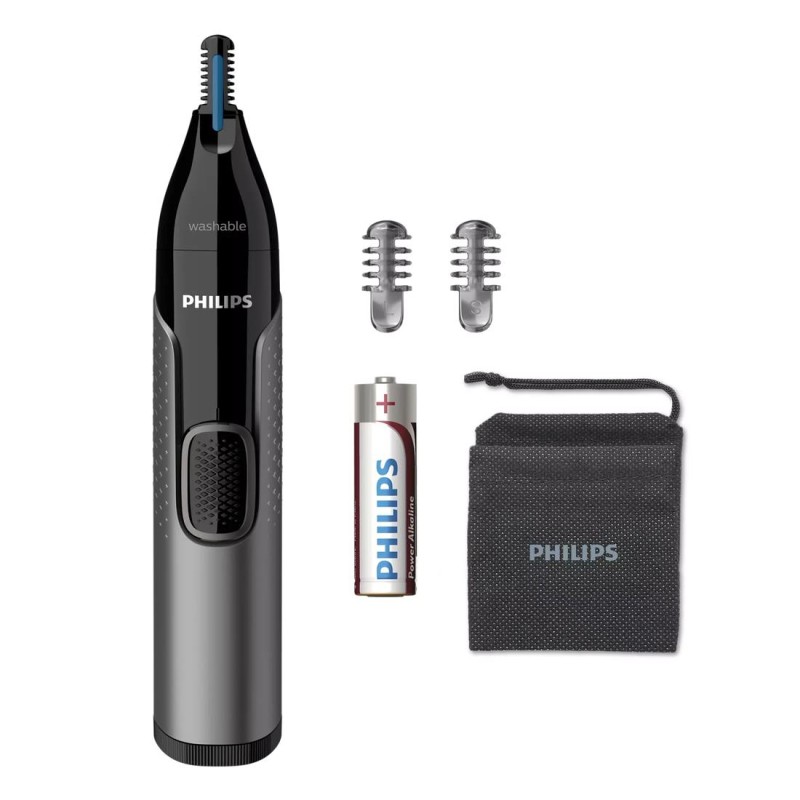 Philips 3000 series Nose trimmer series 3000 NT3650/16 Recortador para nariz, orejas, cejasPhilips 3000 series Nose trimmer series 3000 NT3650/16 Recortador para nariz, orejas, cejas. Color del producto: Gris, Material de la cuchilla: Acero inoxidable. Fuente de energía: Batería, Tipo de batería: AA, Tecnología de batería: AlcalinoCaracterísticas:Desempeño:Color del producto: GrisMojado y seco: SiMaterial de la cuchilla: Acero inoxidableErgonomía:Puño ergonómico: SiA prueba de agua: SiLavable: SiControl de energía:Fuente de energía: BateríaRecargable: NoTipo de batería: AATecnología de batería: AlcalinoOtras características:No necesita mantenimiento ni lubricación: SiContenido del embalaje:Funda de viaje: SiFunda: SiPeine de precisión: SiCantidad de peines: 2