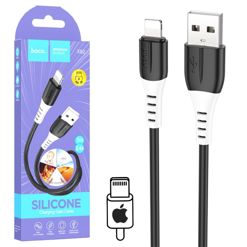 Cable USB a Lightning 1 metro 3Amp Hoco X82 Silicona Black